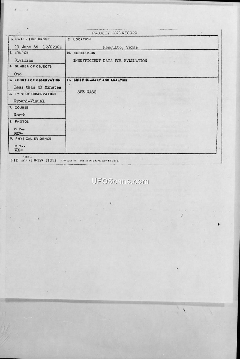 Project 10073 Record — Mesquite, Texas, 11 June 1966