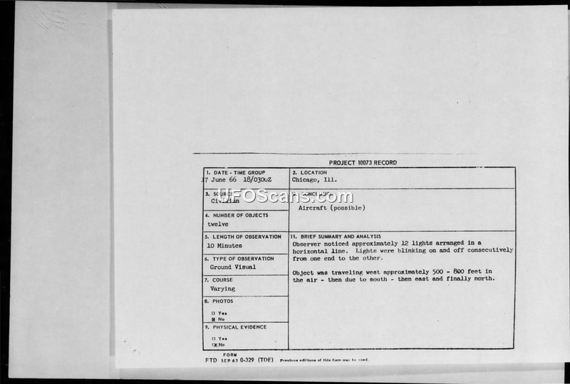 Project 10073 Record: Sighting in Chicago, Illinois, 17-18 June 1966