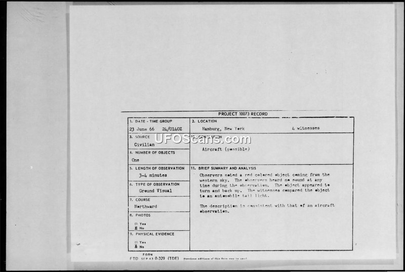Project 10073 Record — Hamburg, New York, 23 June 1966