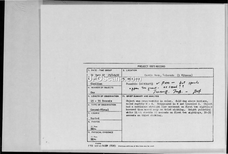 Project 10073 Record — Castle Rock, Colorado, 24 June 1966