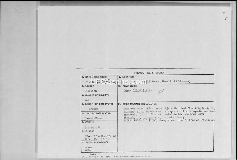 Project 10073 Record — Waikiki Beach, Hawaii, 29 June 1966