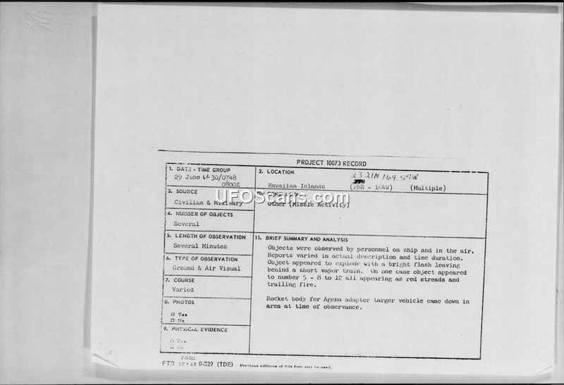 Project 10073 Record: Sighting Report 30 June 1966