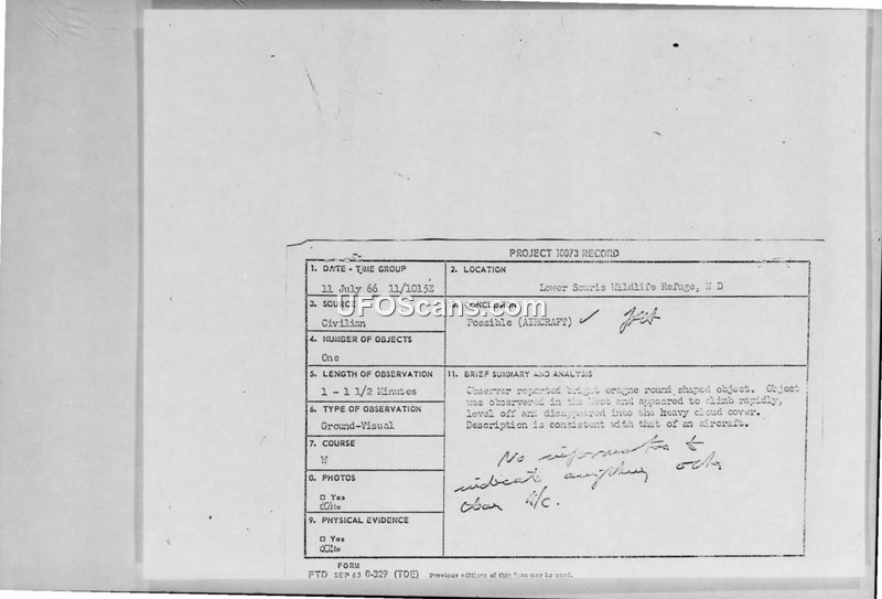 Project 10073 Record: UFO Sighting at Lower Souris Wildlife Refuge