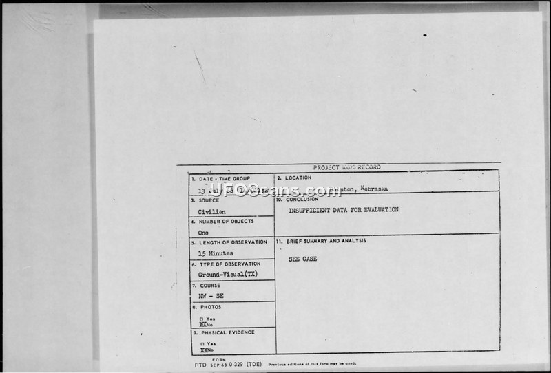 The information which we have received from Offutt AFB, Nebraska is not sufficient for evaluation.
