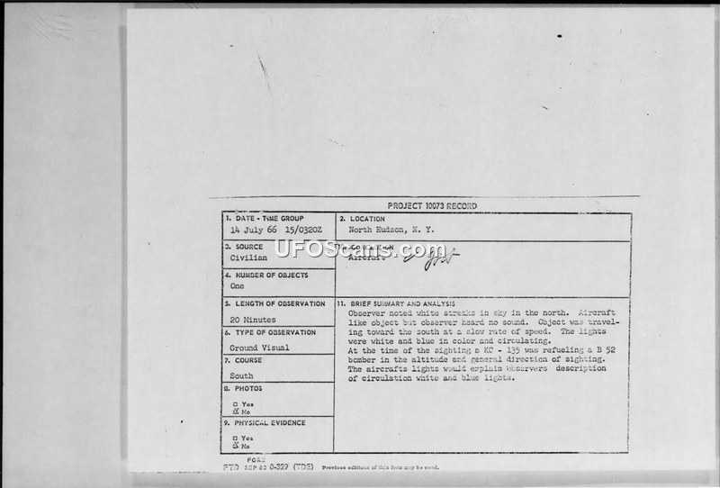 Project 10073 Record — North Hudson, N.Y. — 14 July 1966