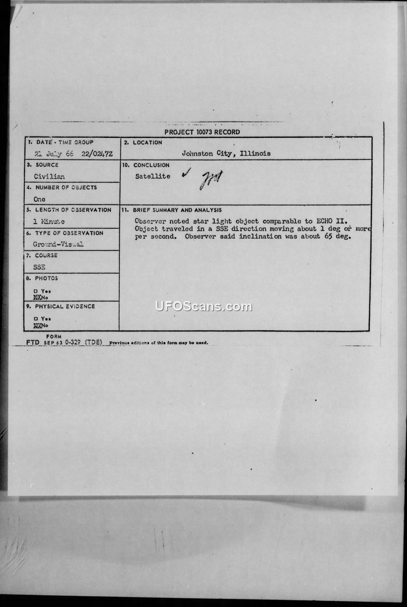 Project 10073 Record — Johnston City, Illinois, 21 July 1966