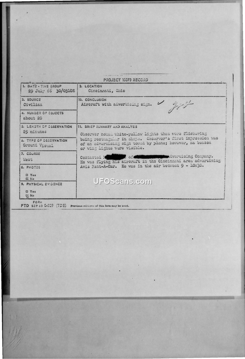 Project 10073 Record — Cincinnati, Ohio, 29 July 1966