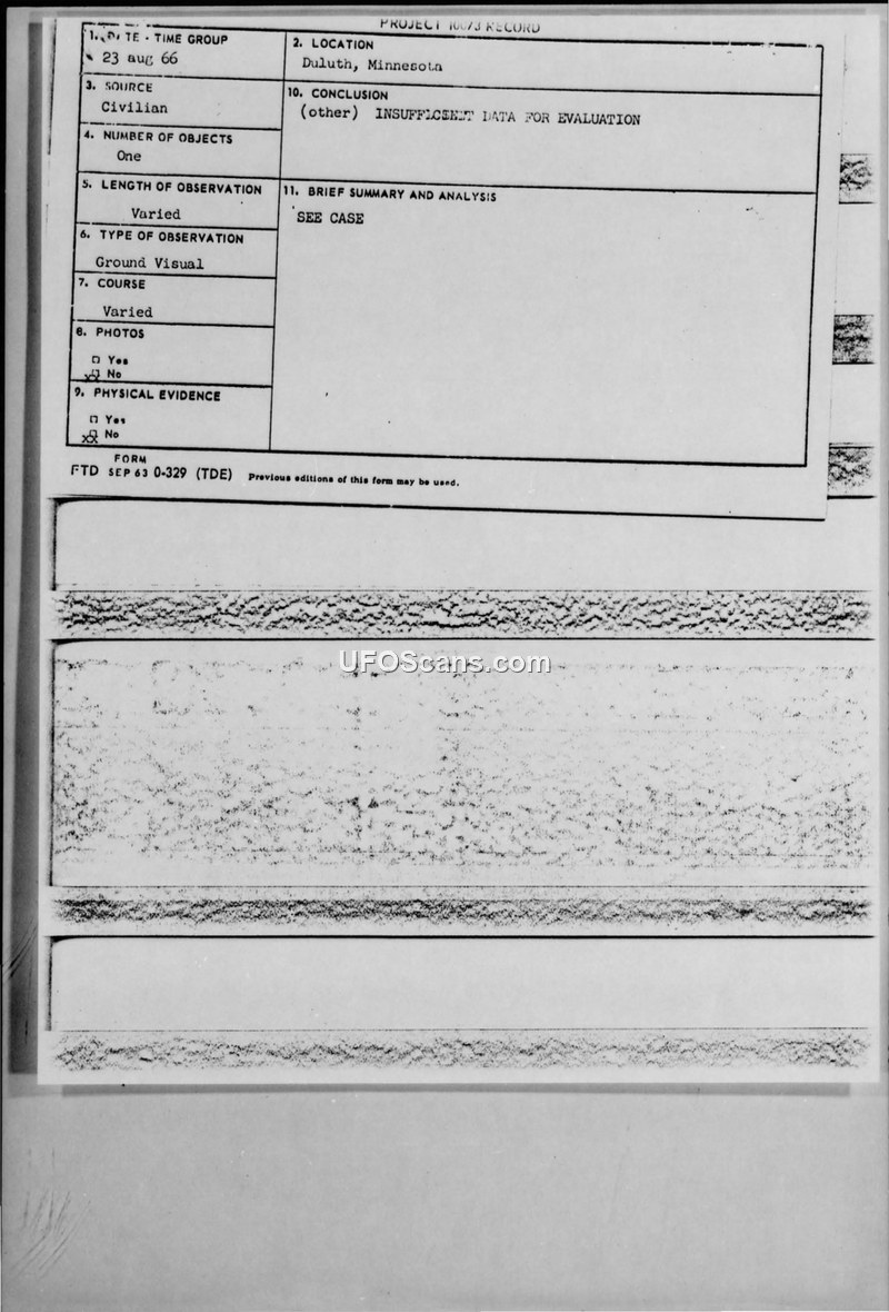 Project Blue Book Incident Report — Duluth, Minnesota, 23 August 1966