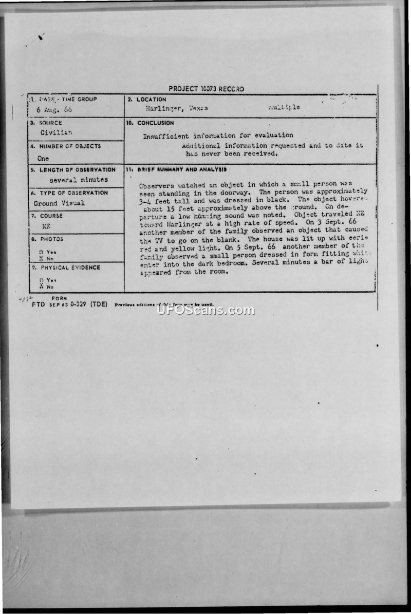 Project 10073 Record: Harlingen, Texas Sighting Report