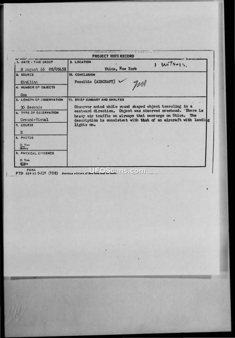 Project 10073 Record — Utica, New York, 8 August 1966