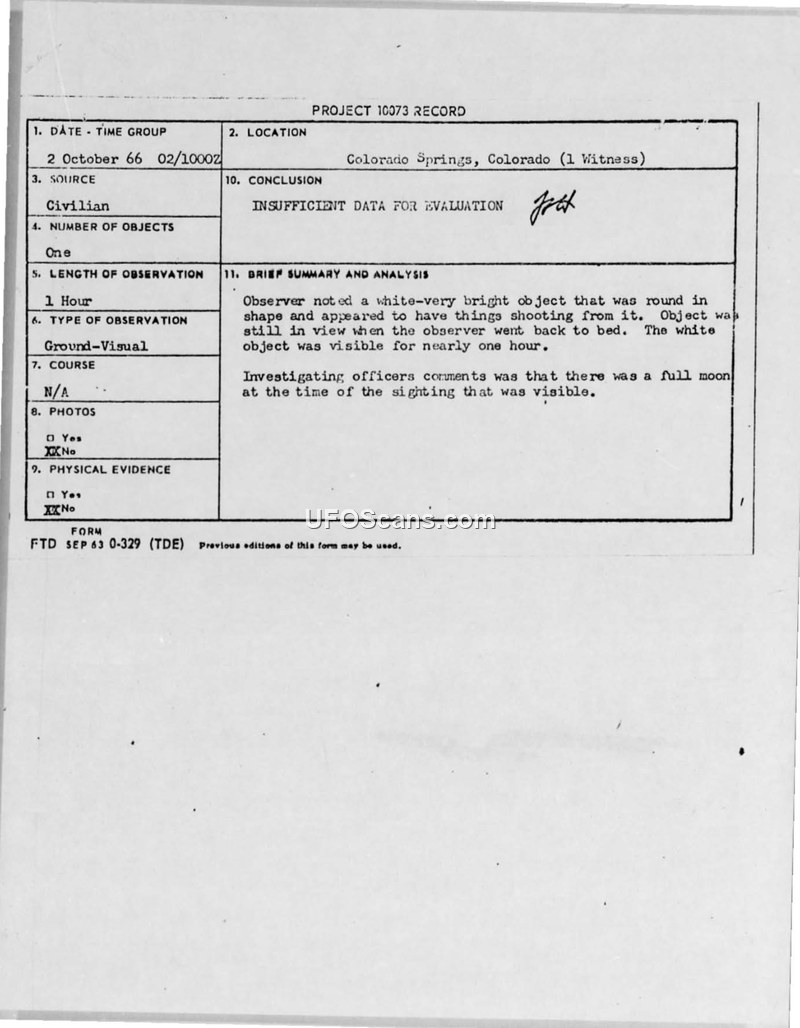 Project 10073 Records and Related Correspondence — Colorado Springs, October 1966