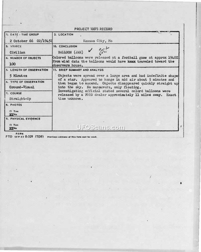 Project 10073 Record — Kansas City, Mo, 2 October 1966