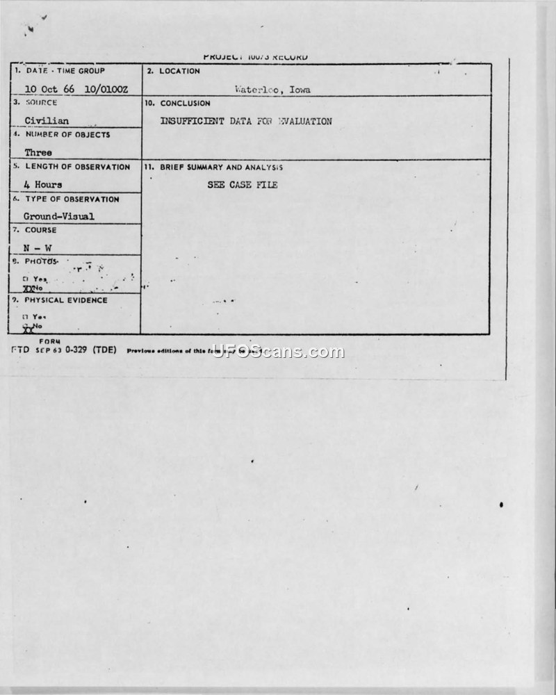 UFO Sighting Report — Waterloo, Iowa, 10 October 1966