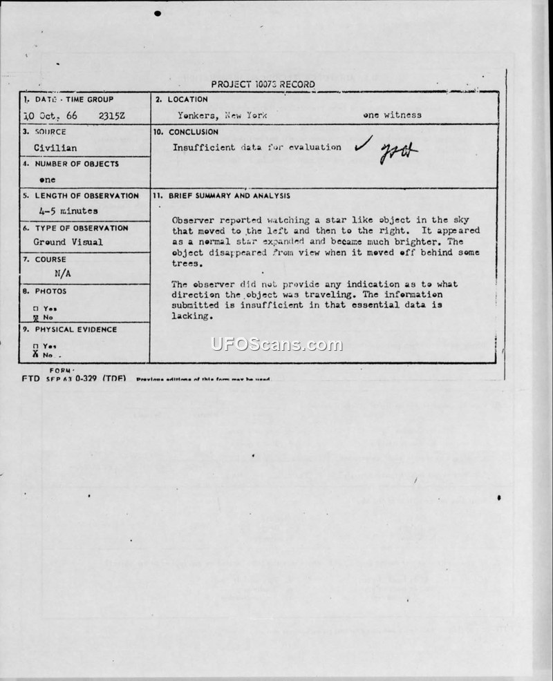 Project 10073 Record — Yonkers, New York, 10 October 1966