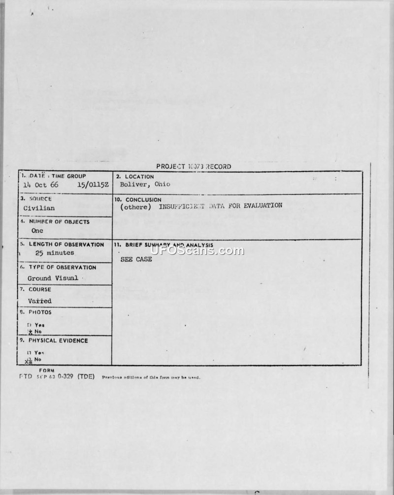 Project 10073 Record — Boliver, Ohio, 14 October 1966