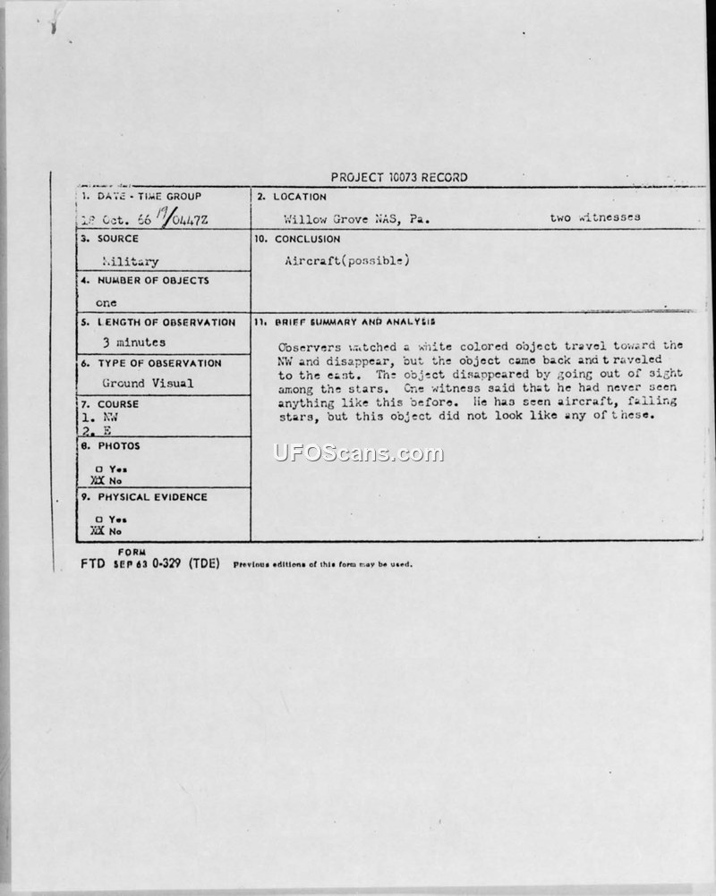 Project 10073 Record — Willow Grove NAS, Pa. — 18 October 1966