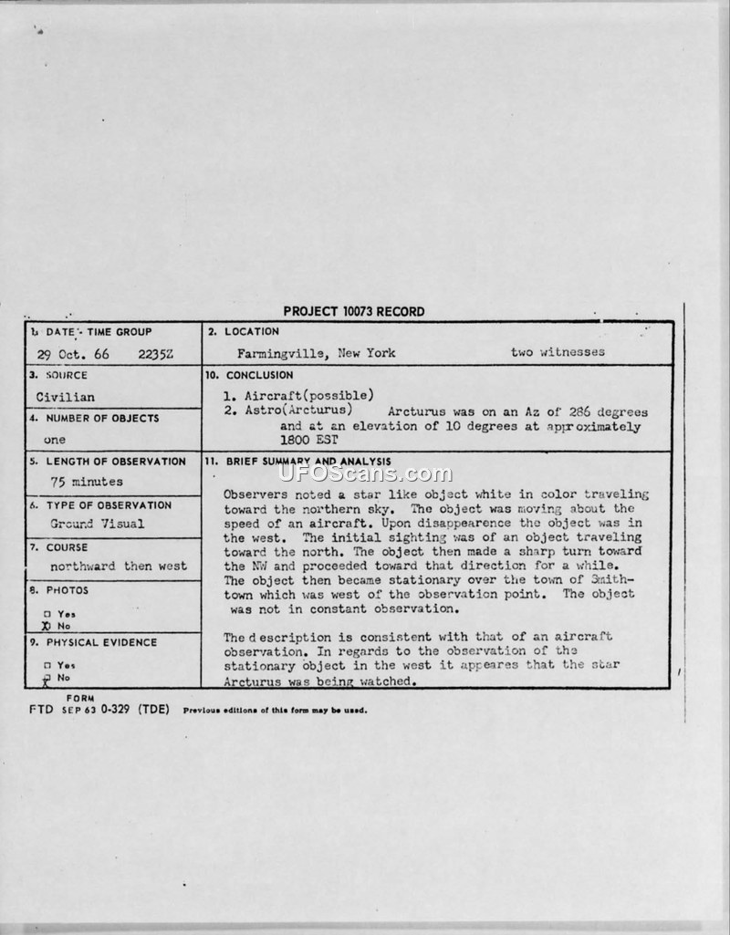 Project 10073 Record — Farmingville, New York, 29 October 1966