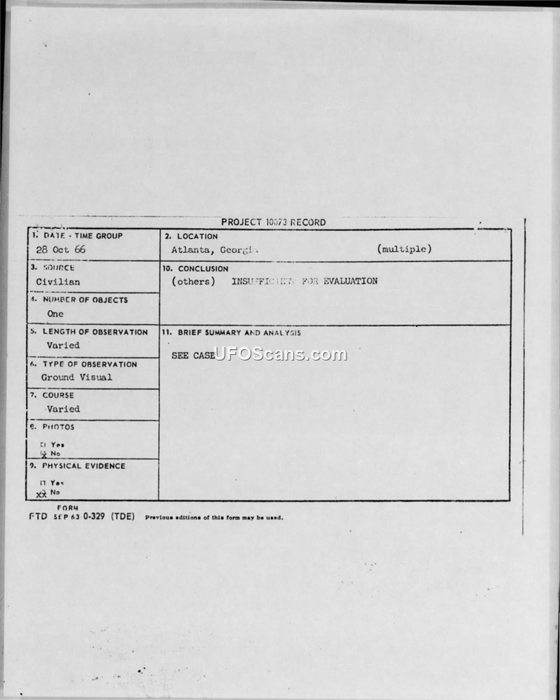 Project 10073 Record — Atlanta, Georgia, 28 October 1966