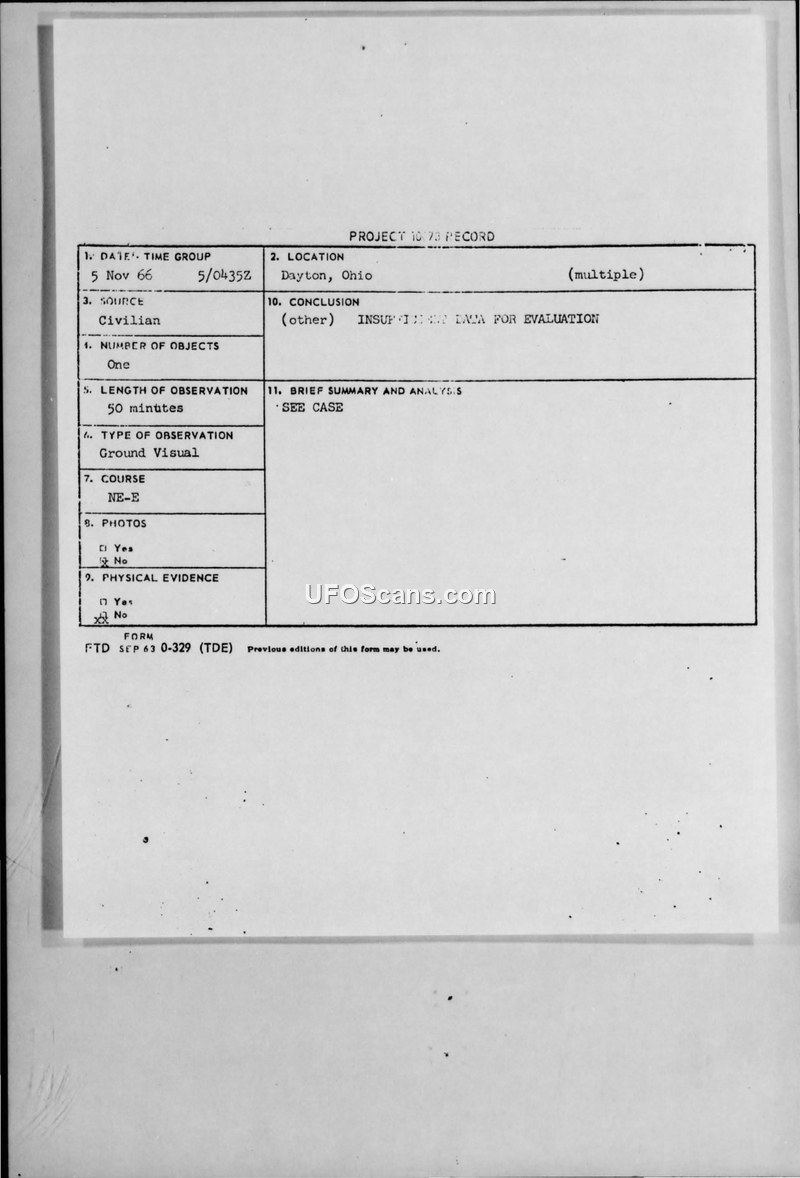 Project Blue Book Sighting Reports - Dayton, Ohio, November 1966