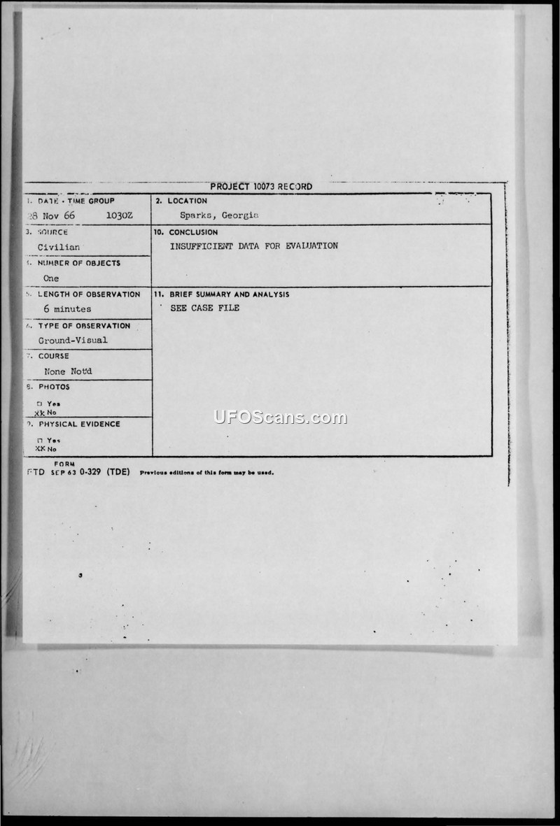 Project 10073 Record — Sparks, Georgia, 28 November 1966