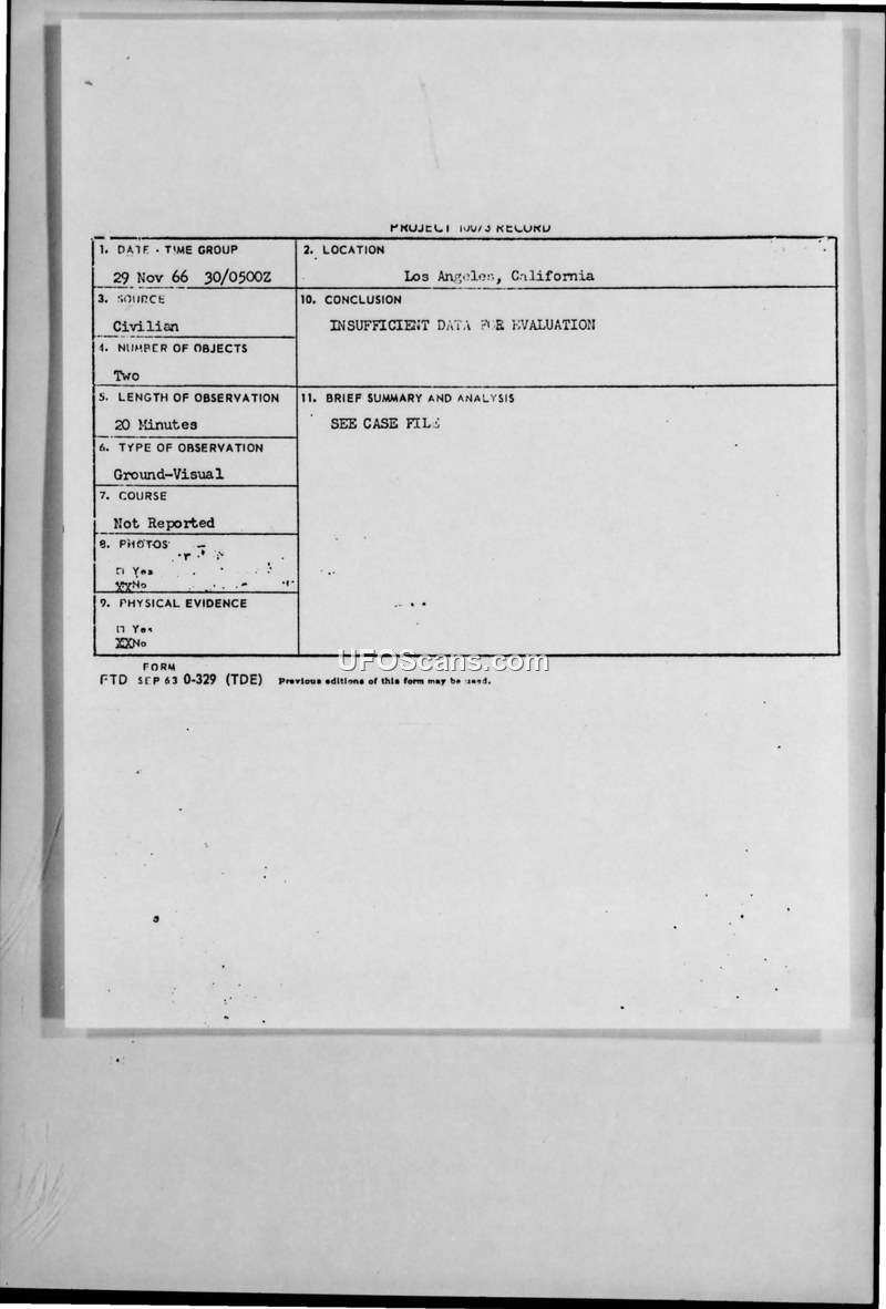 UFO Observation Report — Los Angeles, California, 29 November 1966