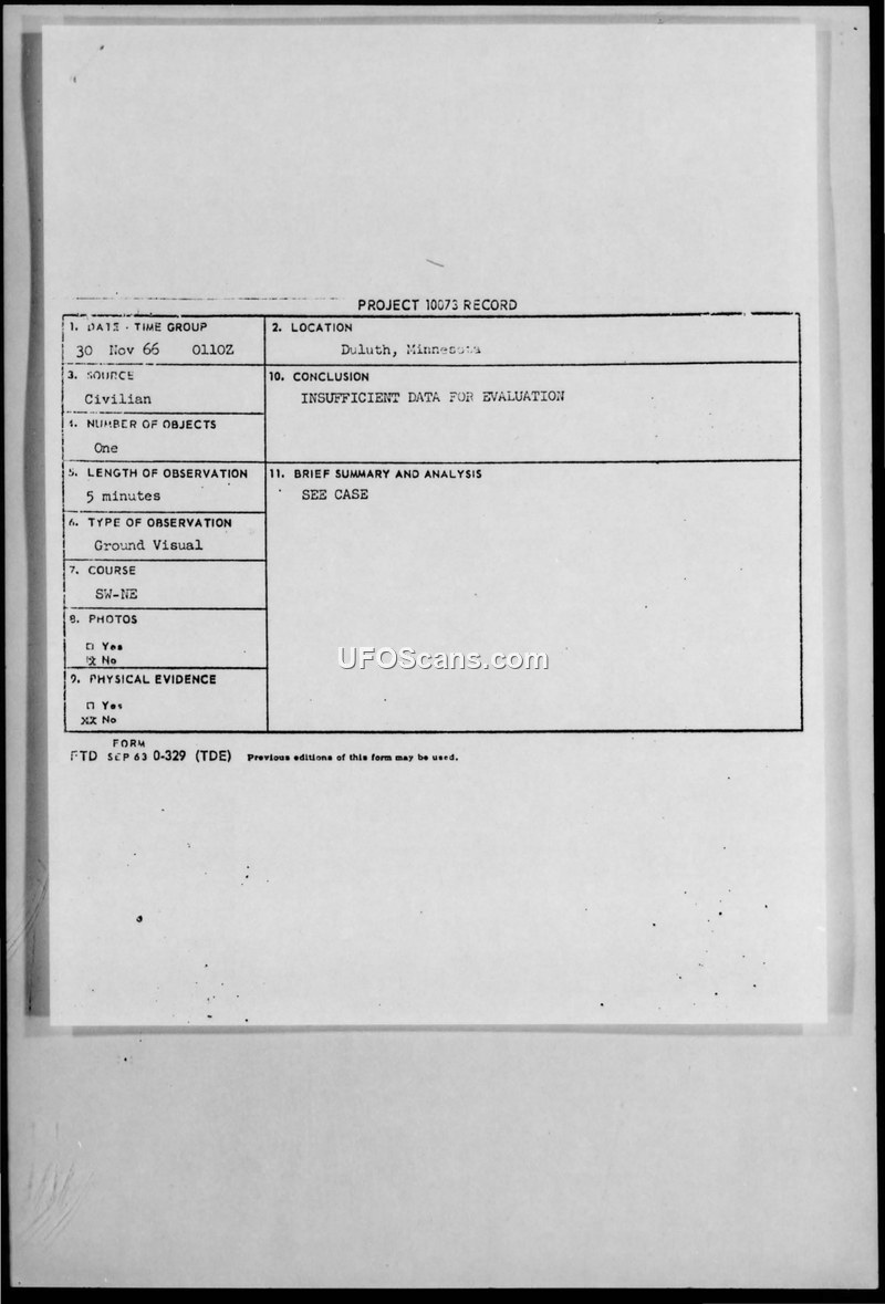 Project 10073 Record — Duluth, Minnesota, 30 November 1966