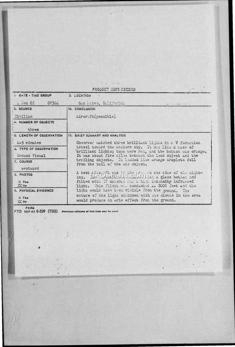 Project 10073 Record: Sighting Report - San Mateo, California, 4 December 1966
