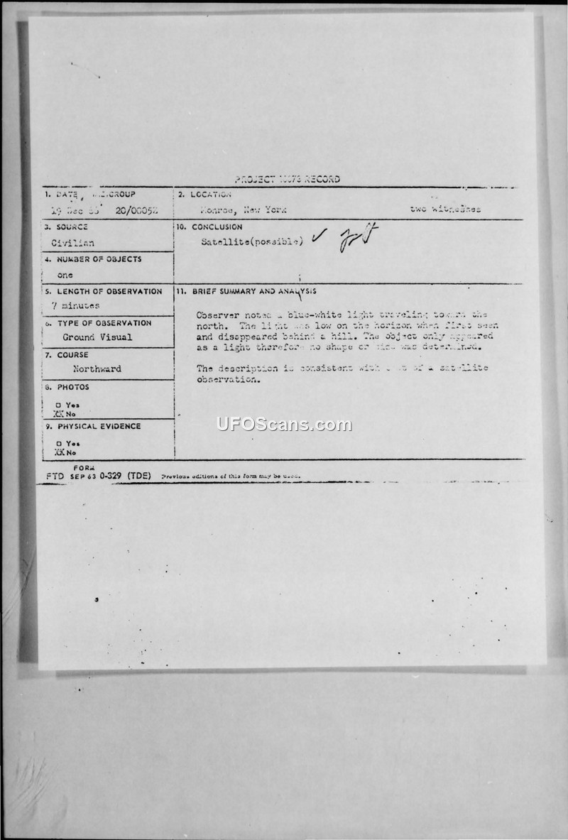 Project 10073 Record — Monroe, New York, 20 Dec 66