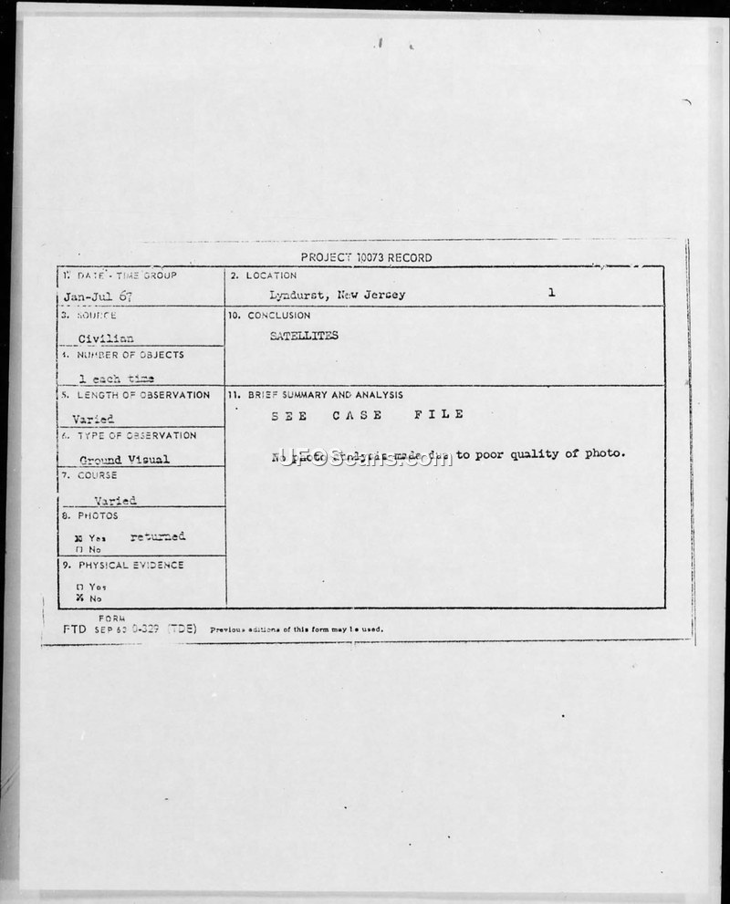 Project 10073 Record: UFO Observations, Lyndhurst, New Jersey