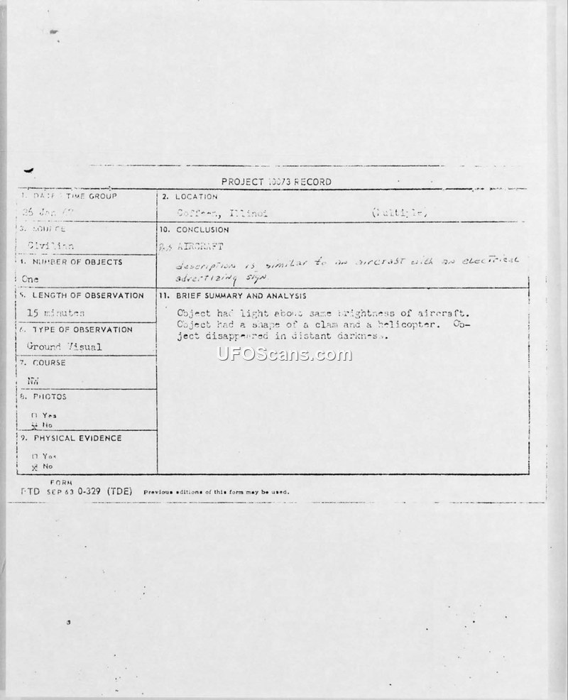 UFO Observation Report — Coffeen, Illinois, January 26, 1967