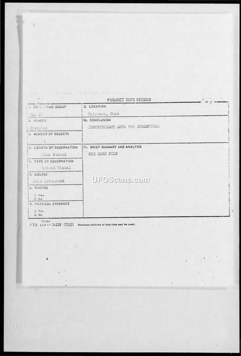 Project 10073 Record — Fairborn, Ohio, February 1967