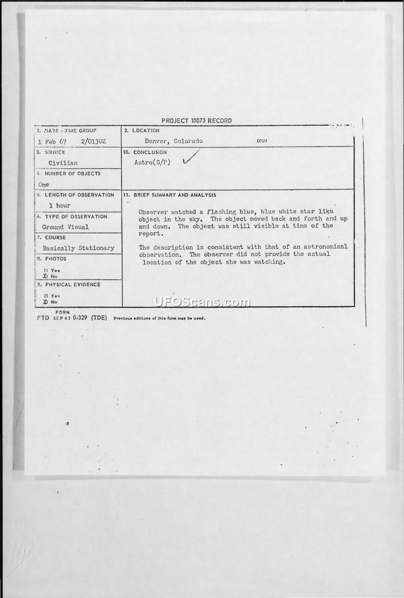Project 10073 Records — Denver, Colorado, February 1967