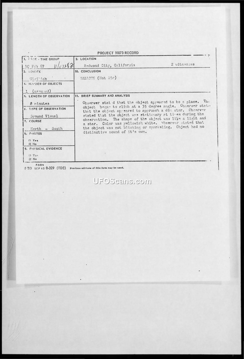 Project Blue Book UFO Sighting Reports and Correspondence — 1967
