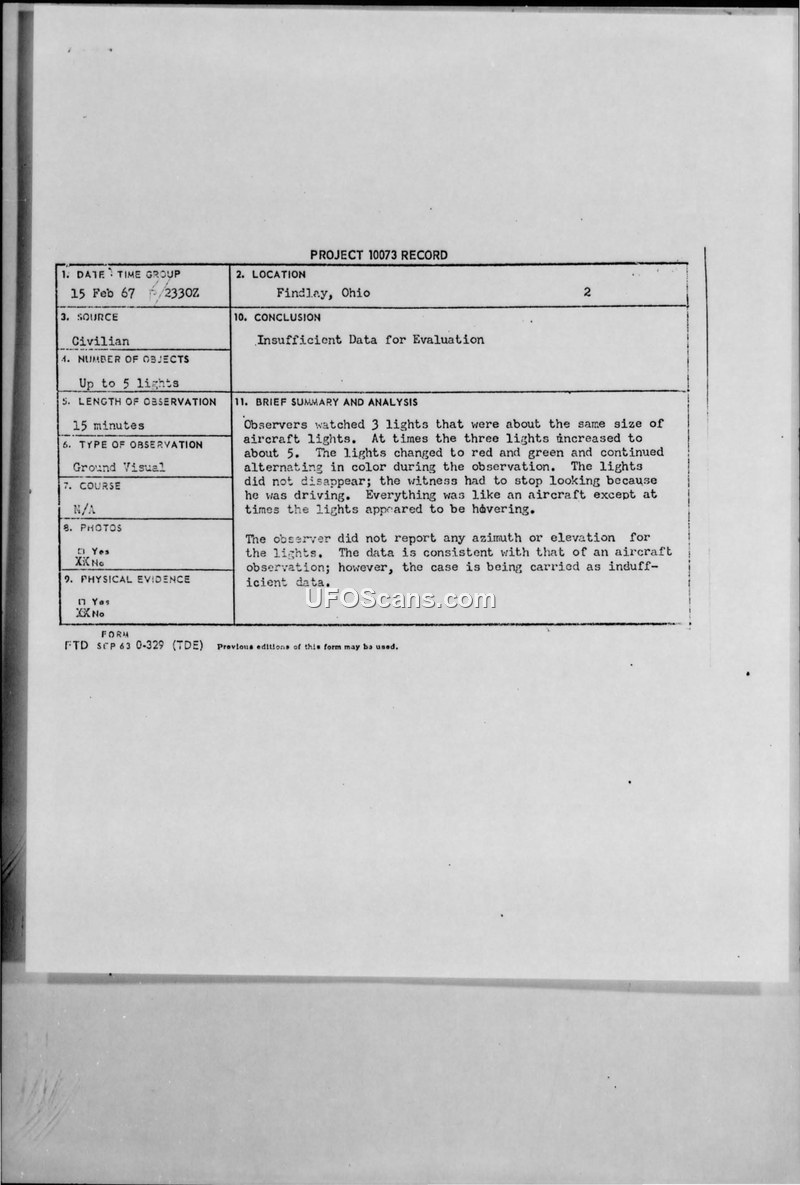 Project 10073 Record — Findlay, Ohio, 15 February 1967