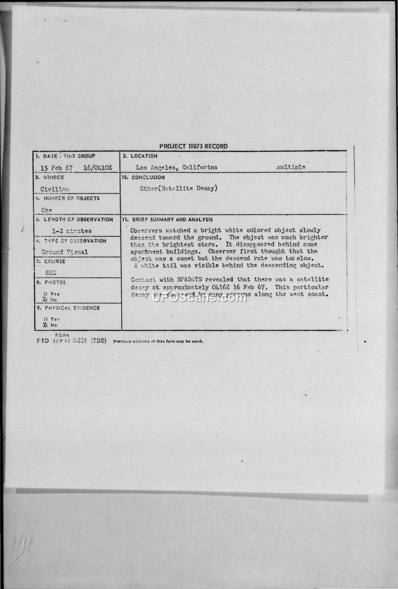 Project 10073 Record — Los Angeles, California, 15 Feb 67