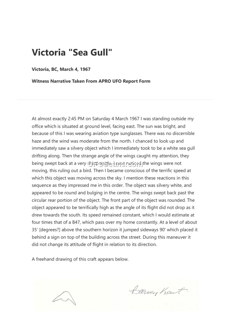 Victoria "Sea Gull" Sighting Report — Victoria, BC, March 4, 1967