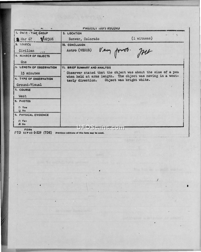 Project 10073 Record — Denver, Colorado Sighting Reports (March 1967)