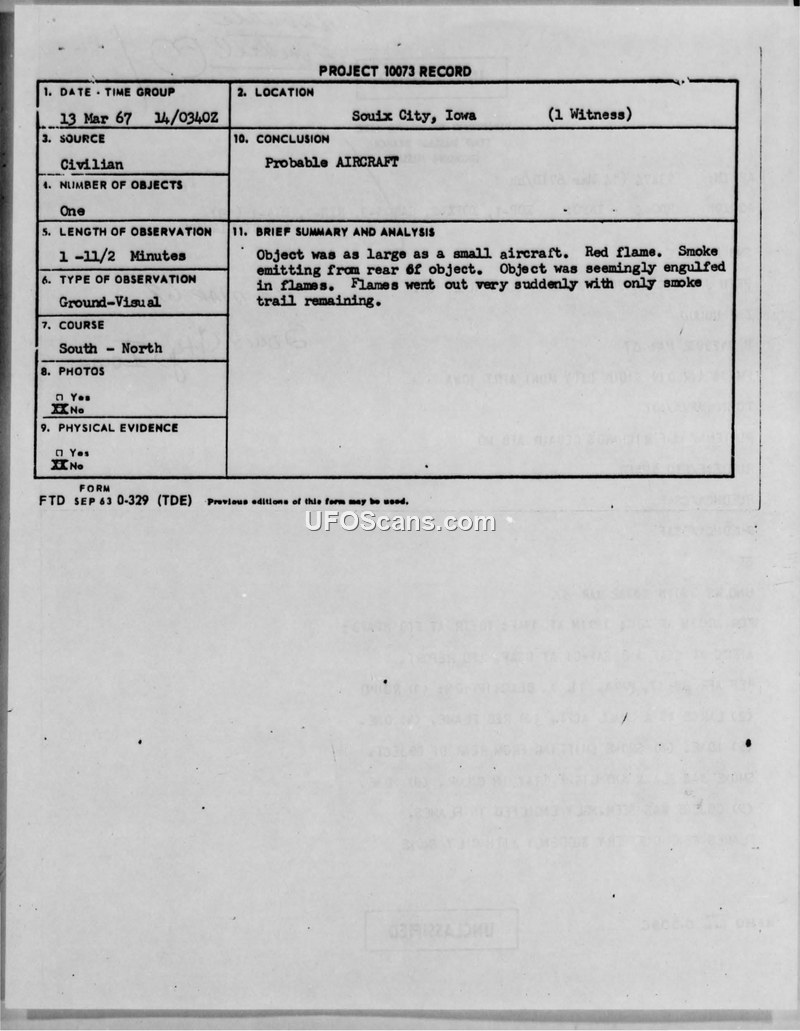 Project 10073 Record — Sioux City, Iowa, 14 March 1967