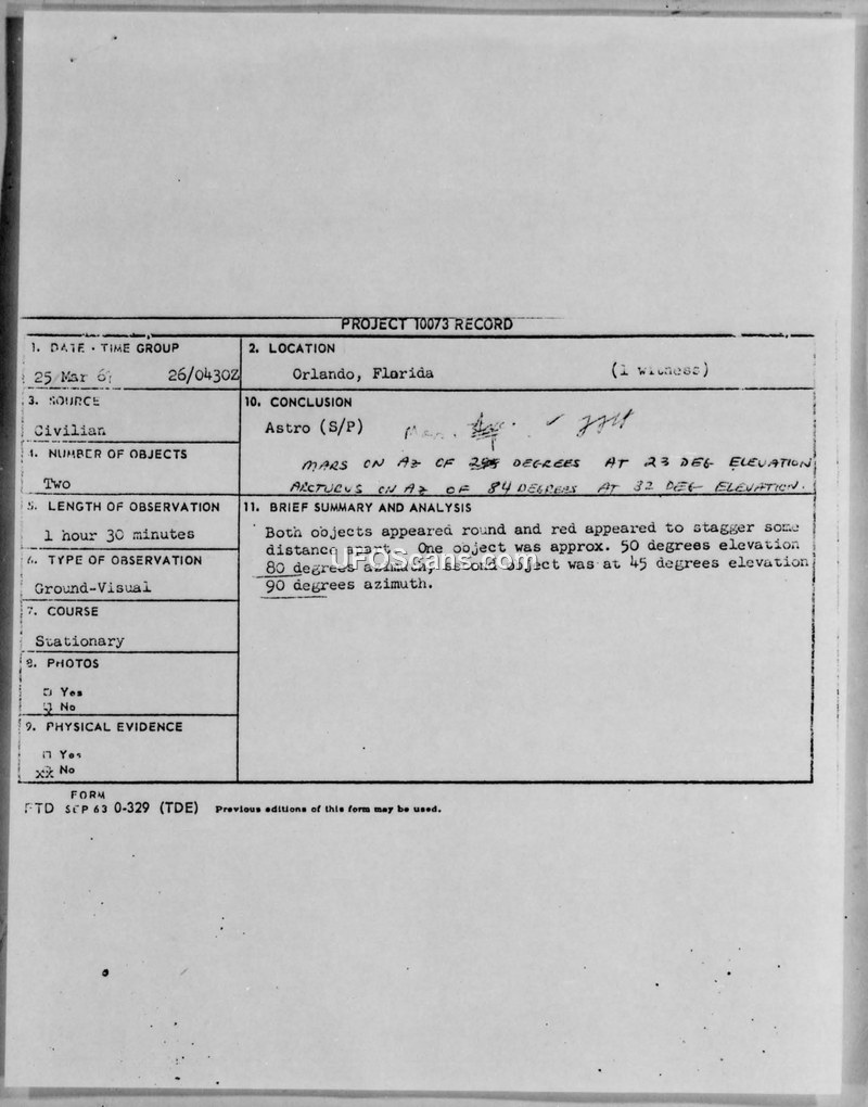 Project 10073 Record — Orlando, Florida, 25 March 1967