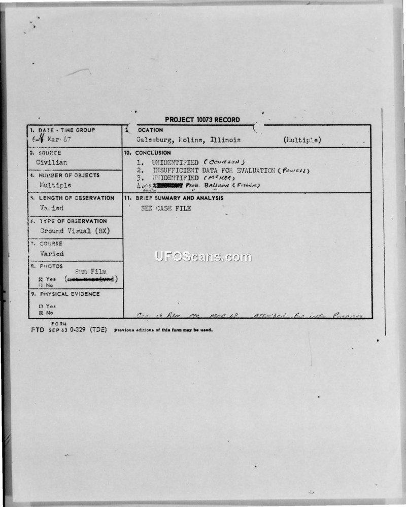 Project 10073 Record: Moline, Illinois Sighting Incident Report