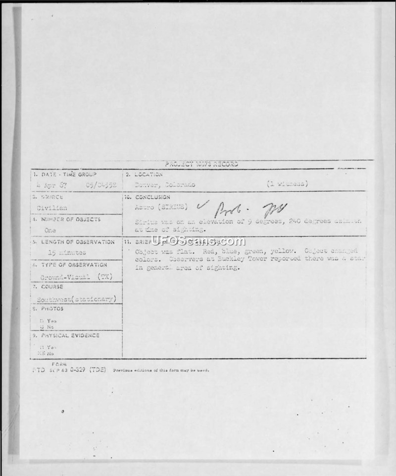 Most sightings were identified as astronomical bodies (Venus, Sirius) or conventional aircraft (jet commander) with high-intensity strobe lights.