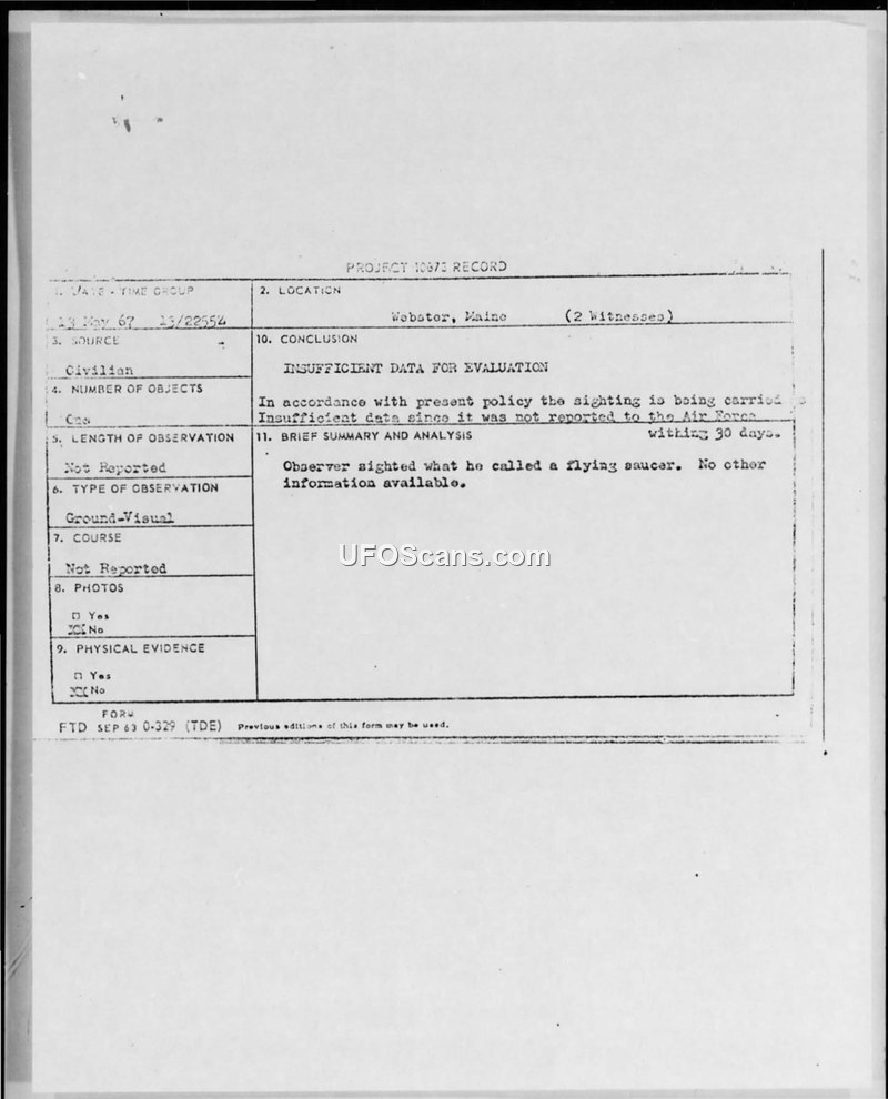 The Air Force concluded that the provided photographs lacked sufficient definition to identify the object. Investigations into local aerial advertising operators were conducted to rule out common explanations, with negative results.