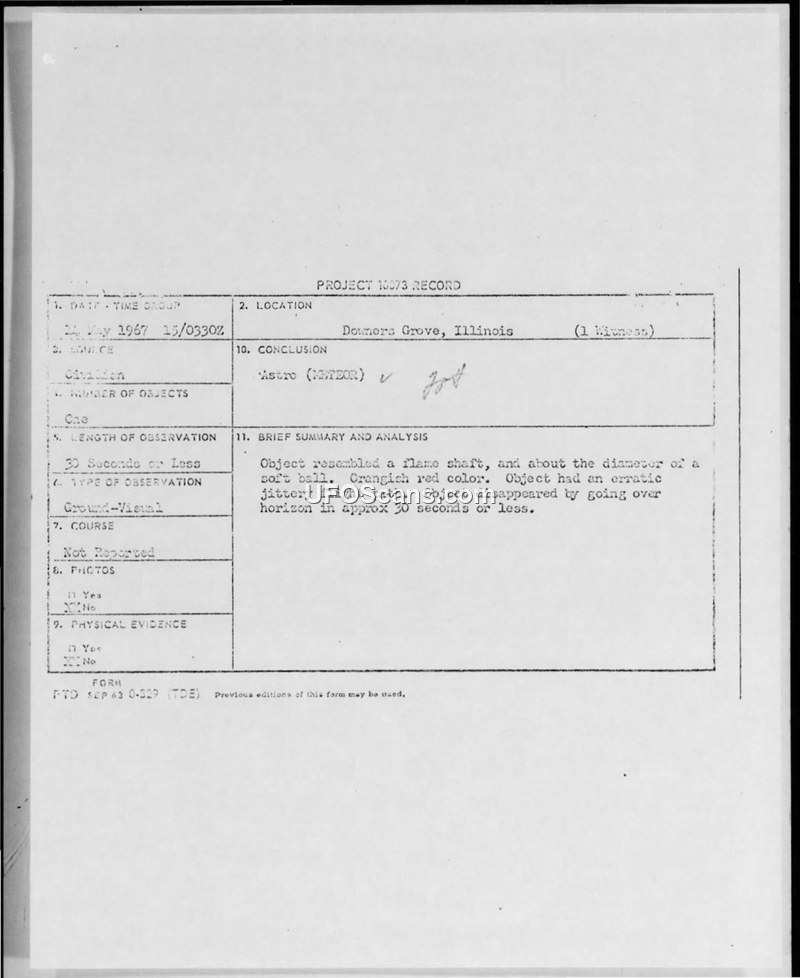 Project 10073 Record — Downers Grove, Illinois, 14 May 1967