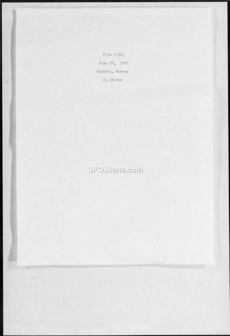 This document is a photographic file containing 24 images of an unidentified aerial phenomenon recorded in Wichita, Kansas, on June 27, 1967. It was processed by the Foreign Technology Division of the Air Force Systems Command.