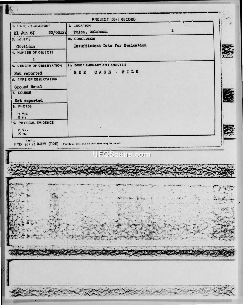 Project 10073 Record — Tulsa, Oklahoma, 21 June 1967