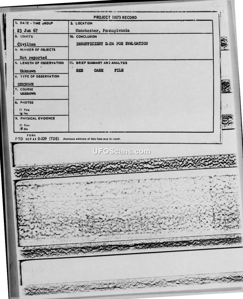 Project 10073 Record — Manchester, Pennsylvania, 23 June 1967