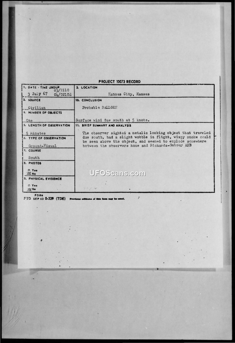 Project 10073 Record — Sighting of 3 July 1967, Kansas City, Kansas