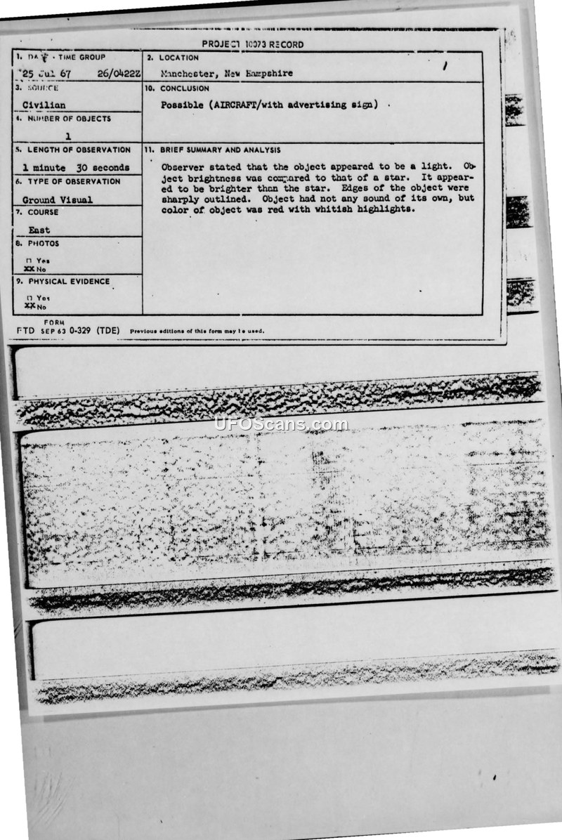 Project 10073 Record — Manchester, New Hampshire, 25 July 1967
