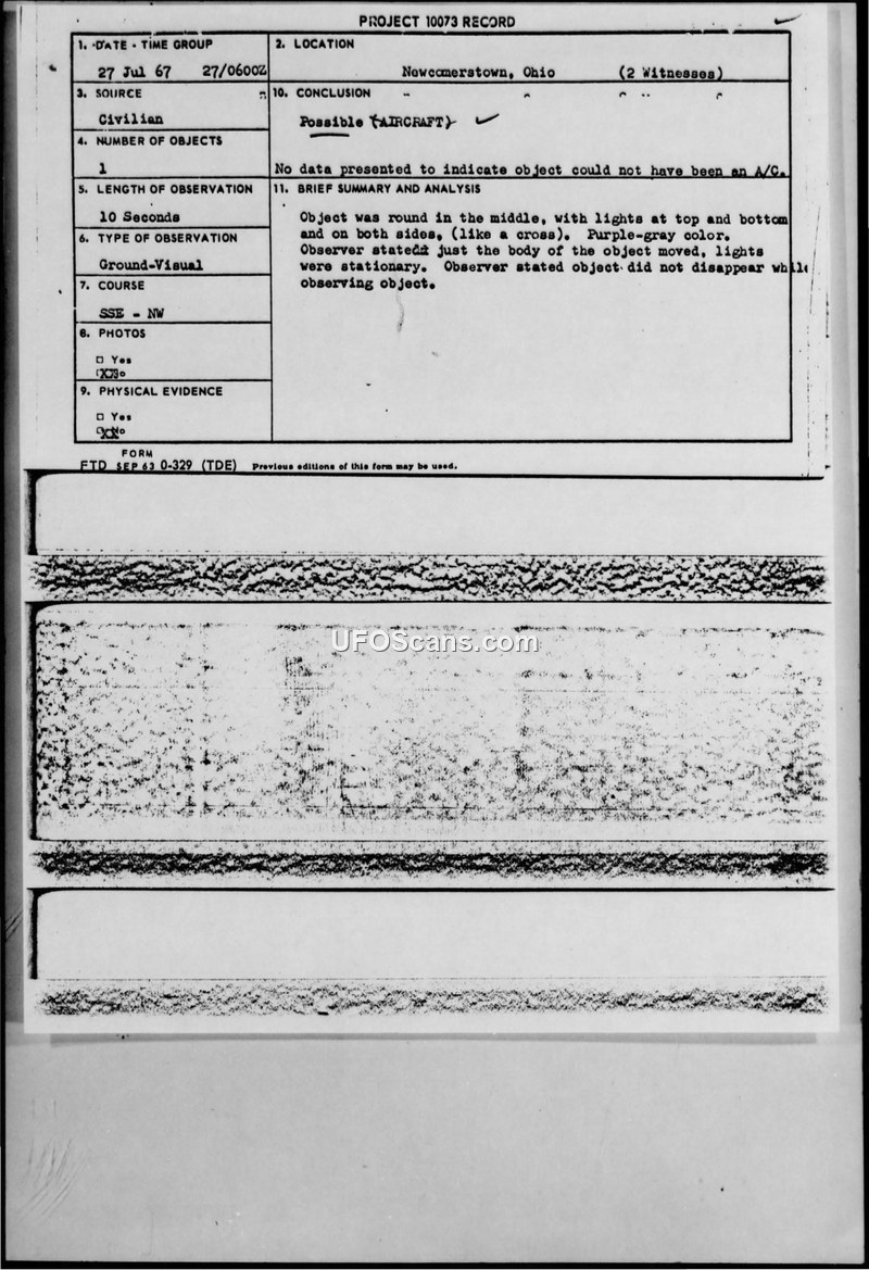 Project 10073 Record — Newcomerstown, Ohio, July 1967