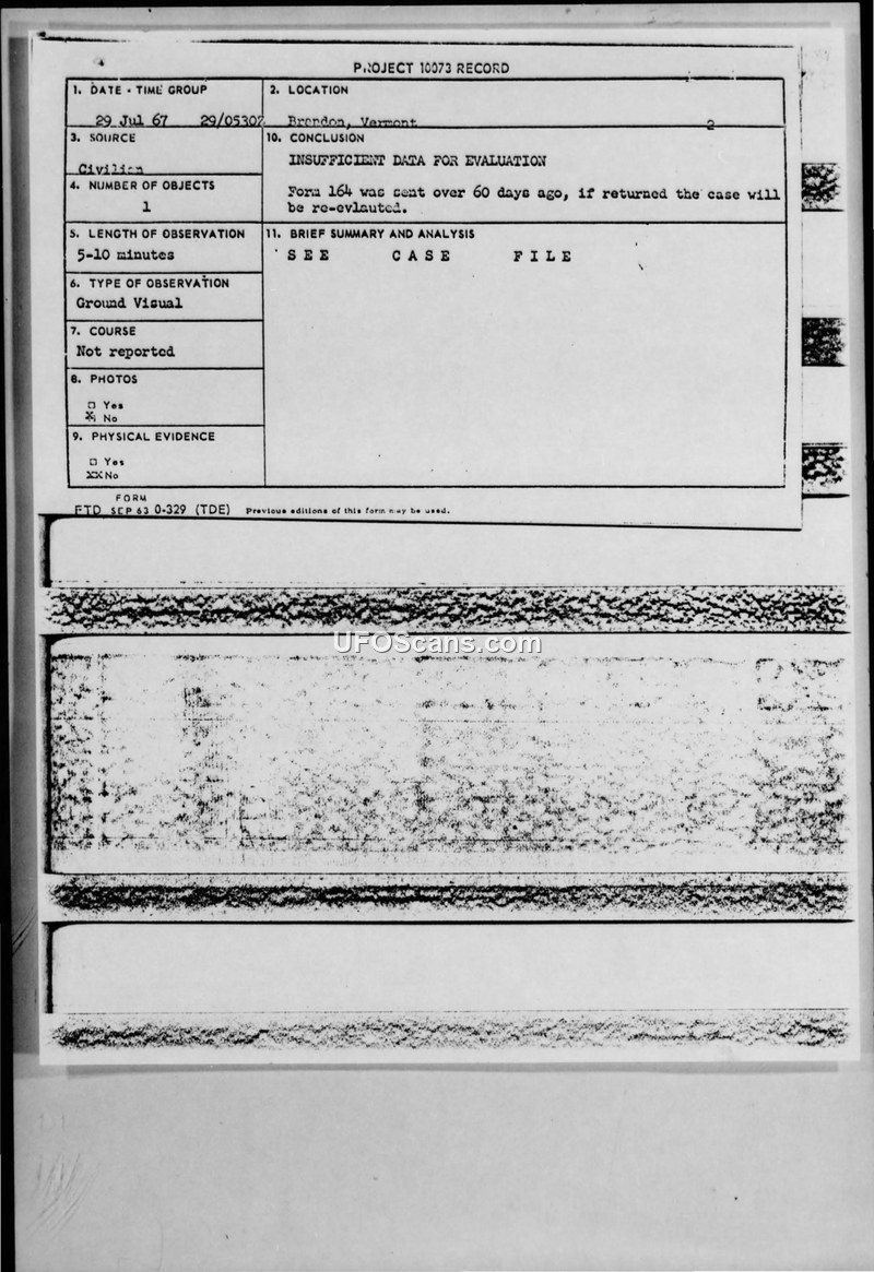 Project 10073 Record — Sighting Report, Springfield, Missouri, 29 July 1967